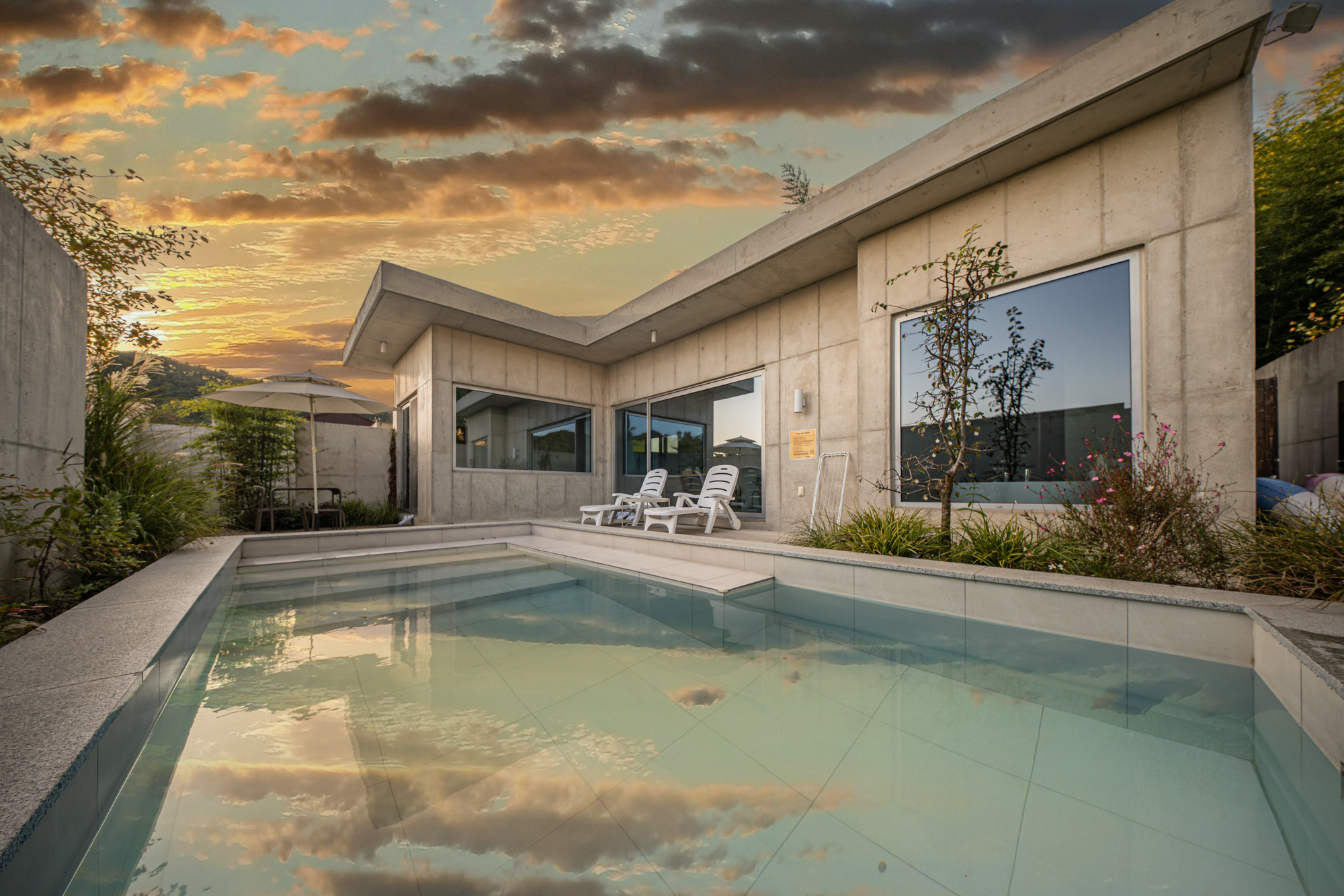 모든 객실은 프라이빗 담장으로 외부와 완전히 차단되어 있으며 담장 내부 개별정원에서 자쿠지와 수영장, 바베큐를 즐기실 수 있습니다.
